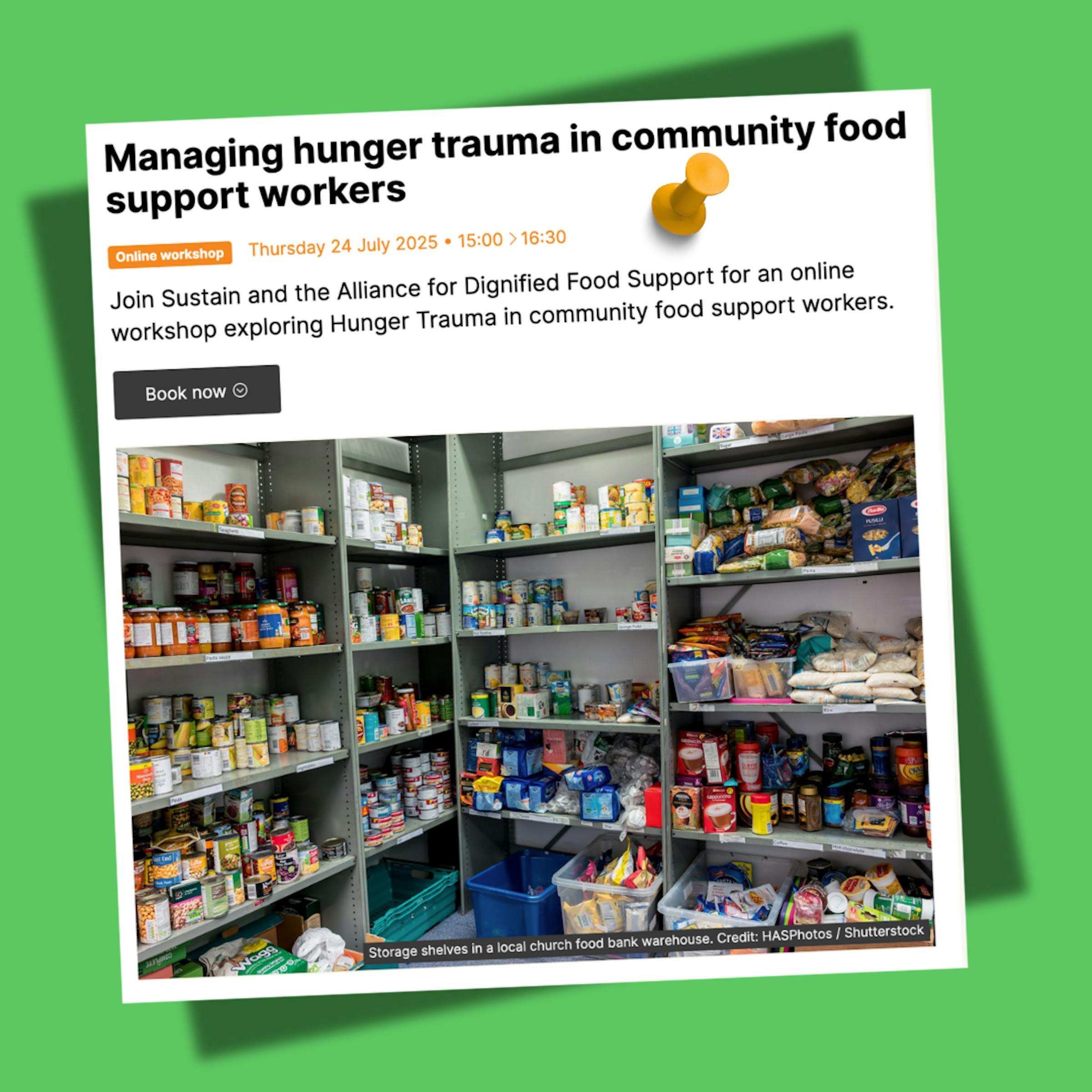 Join Sustain : The Alliance For Better Food And Farming, for this free online workshop which will shine a spotlight on the emotional and ethical challenges faced by those working and volunteering in community food support. The session is aimed at food partnerships, food poverty alliances, community food aid providers, educators, and others working in or around community food support. Thursday 24 July, 3 - 4.30 pm. Register